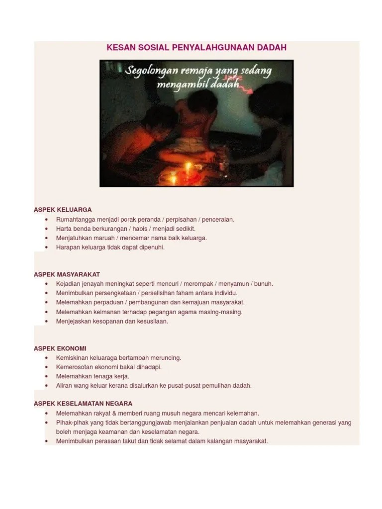 3 Kesan Penyalahgunaan Dadah Terhadap Individu : Kesan Penyalahgunaan Dadah Terhadap Masyarakat Negara